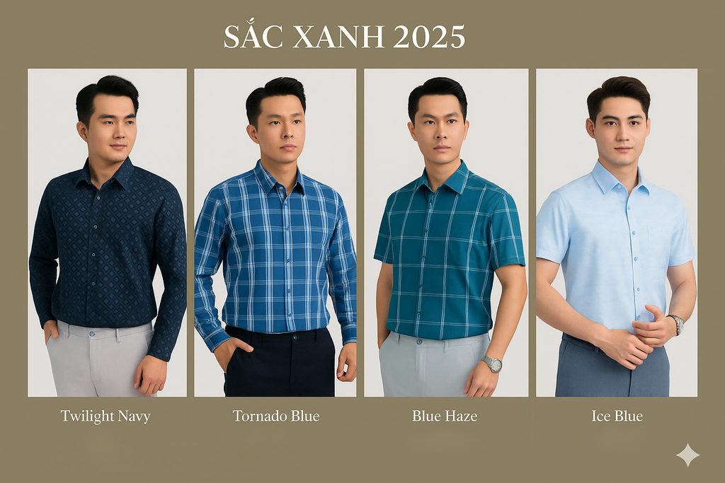 Nắm bắt được ý nghĩa và từng tông màu xanh xu hướng 2025 trong thời trang sơ mi nam và cách phối hợp để trở nên nổi bật:
